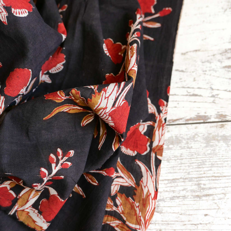 £17.40/mThis large scale floral is printed onto ecru cotton in iron black and red. Hand-loomed cotton is soft and lightweight, suitable for shirts and dresses.