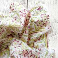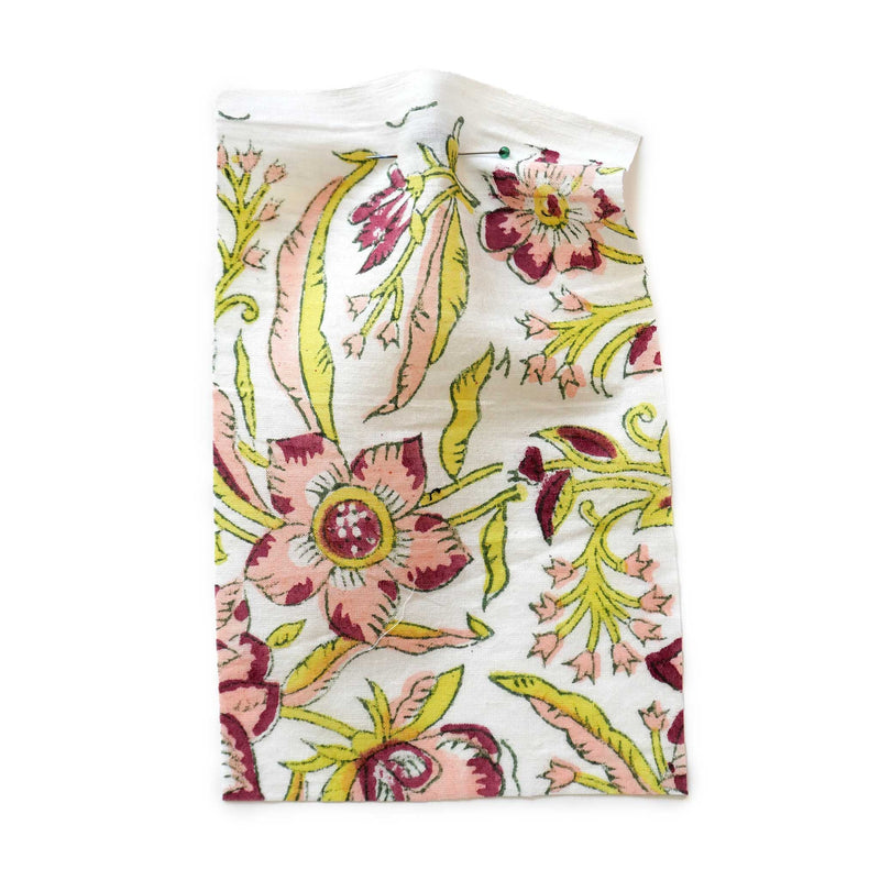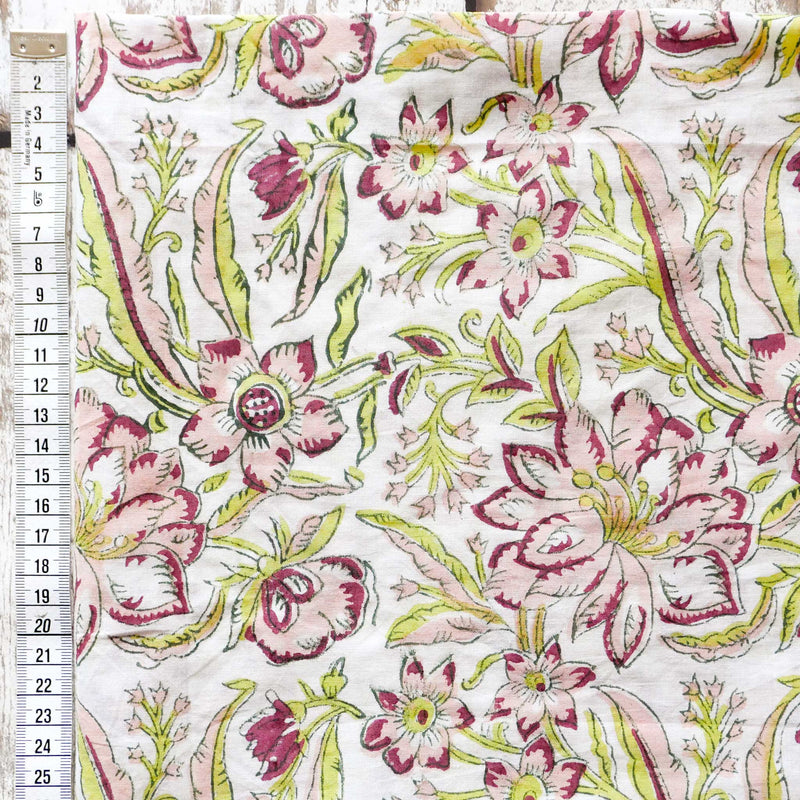 £17.40/mThis is a hand-loomed cotton, hand-printed with a pretty floral design in acid green and pink. We love the soft hand-loomed cotton and the imperfections that come from hand printing. This lightweight cotton is suitable for shirts and dresses.