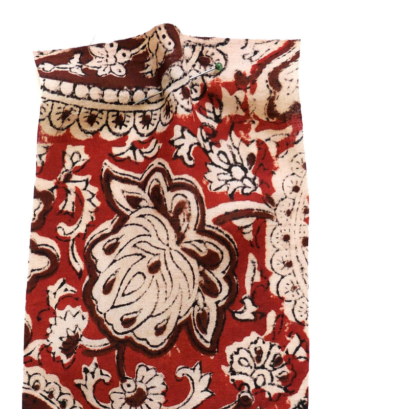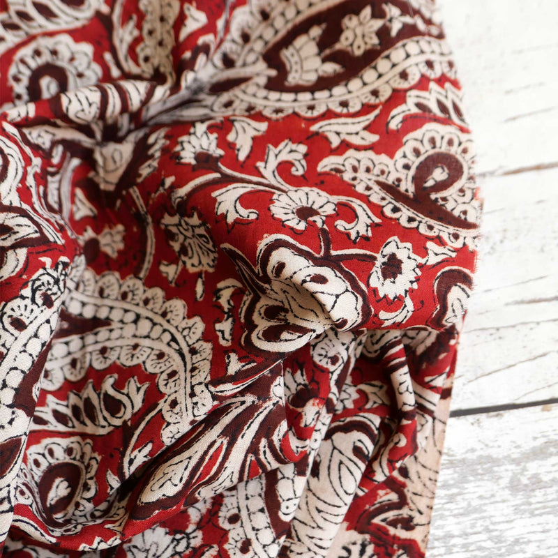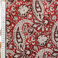 £17.40/mThis is a parchment coloured cotton, printed with a red and garnet floral paisley print. The soft hand-loomed cotton is suitable for shirts and dresses.