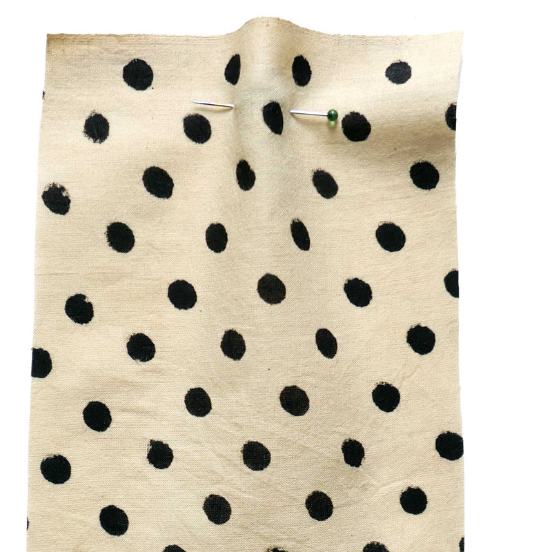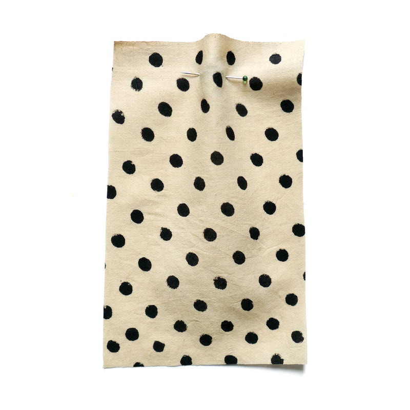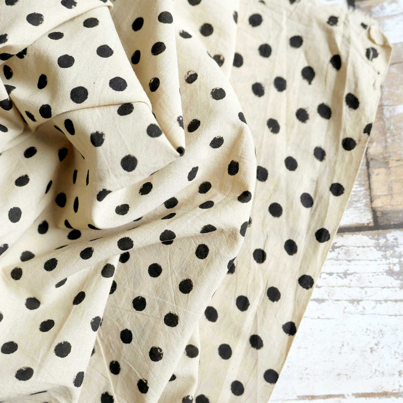 £17.40/mThis is a parchment coloured, hand-loomed cotton, printed with a black spot. We love the character and the imperfections that come from hand printing. This lightweight cotton is suitable for shirts and dresses.