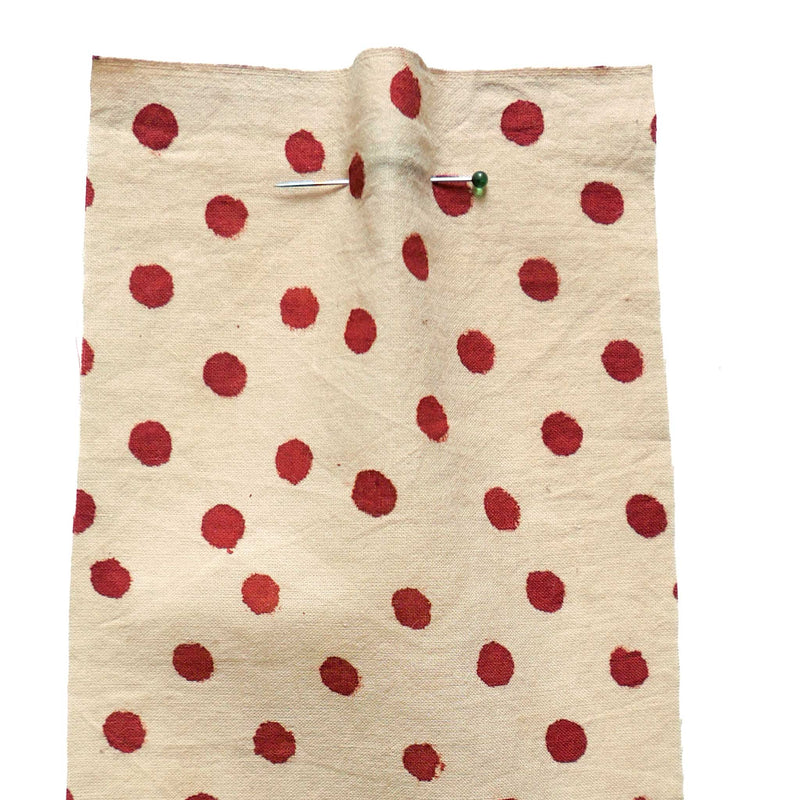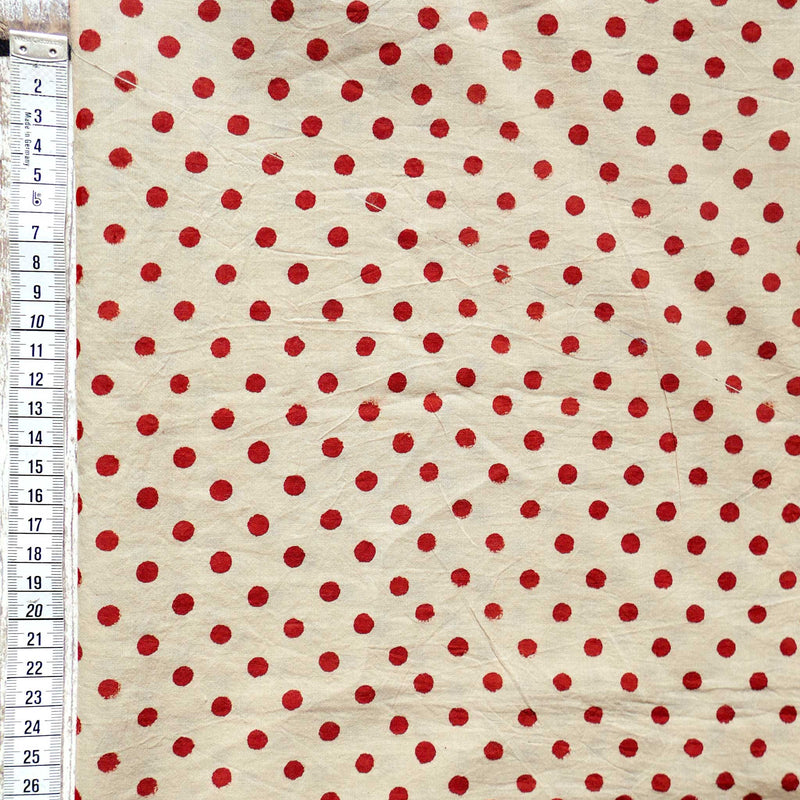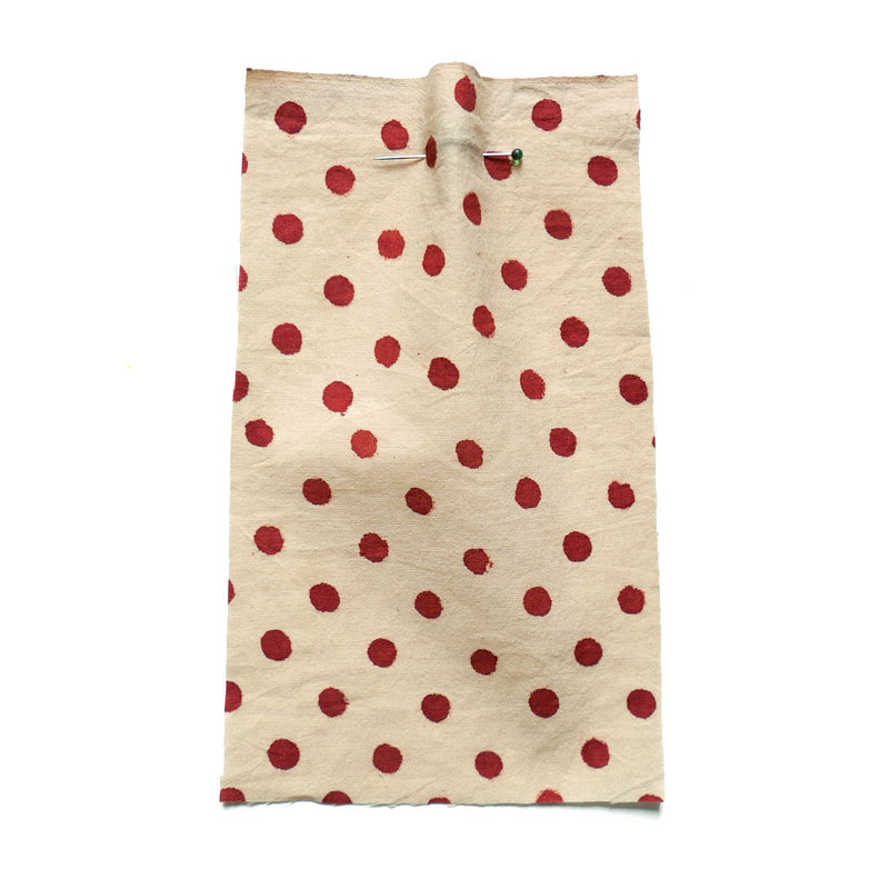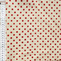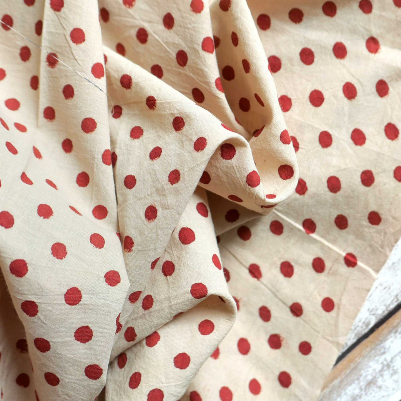 £17.40/mThis is a parchment coloured, hand-loomed cotton, printed with a red spot. We love the character and the imperfections that come from hand printing. This lightweight cotton is suitable for shirts and dresses.