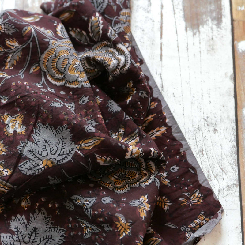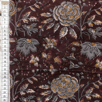 £17.40/mThis is a hand-loomed cotton, hand-printed with a muted floral design in warm brown and pewter grey. We love the soft hand-loomed cotton and the imperfections that come from hand printing. This lightweight cotton is suitable for shirts and dresses.