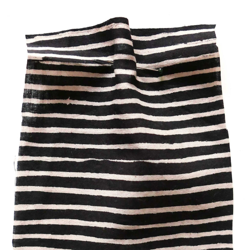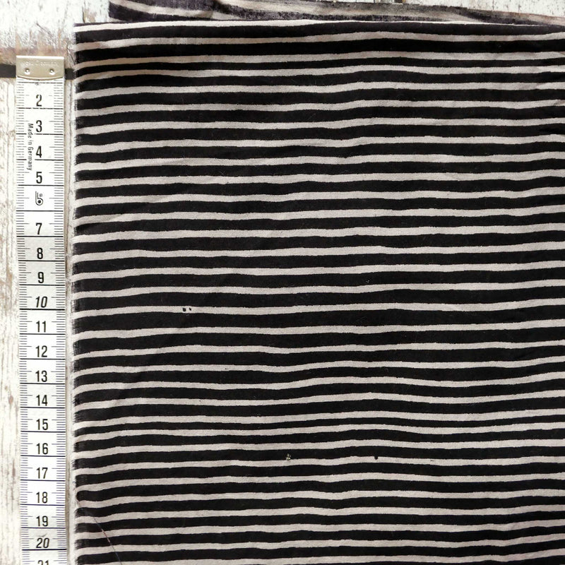 £17.40/mThis is a fine, hand-loomed cotton, hand-printed with a black stripe on a cream ground. We love the soft hand-loomed cotton and the imperfections that come from hand printing. This lightweight cotton is suitable for shirts and dresses.