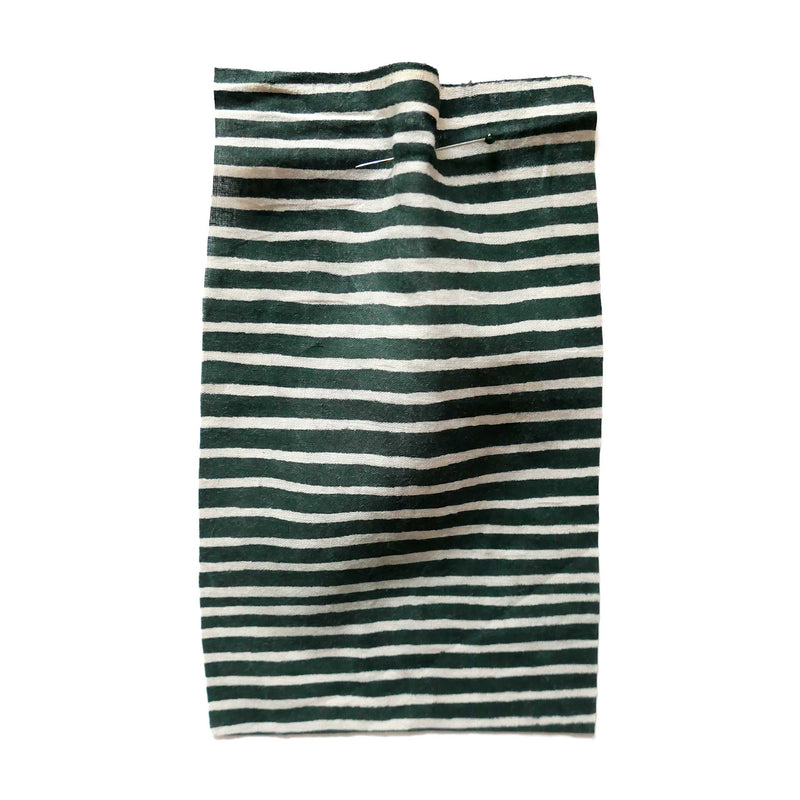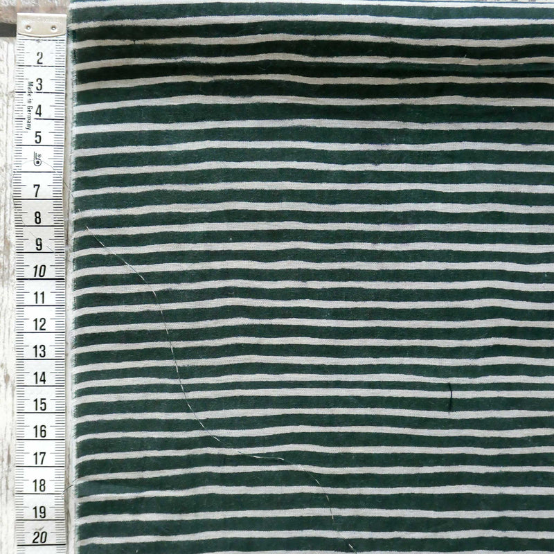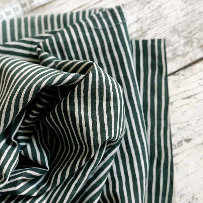 £17.40/mThis is a fine, hand-loomed cotton, hand-printed with a green stripe on a cream ground. We love the soft hand-loomed cotton and the imperfections that come from hand printing. This lightweight cotton is suitable for shirts and dresses.