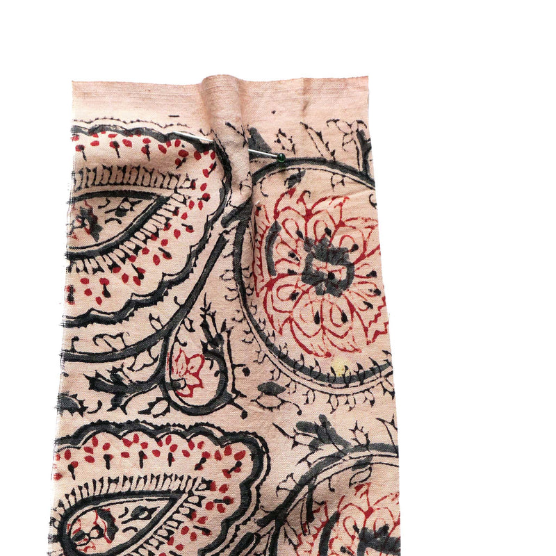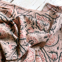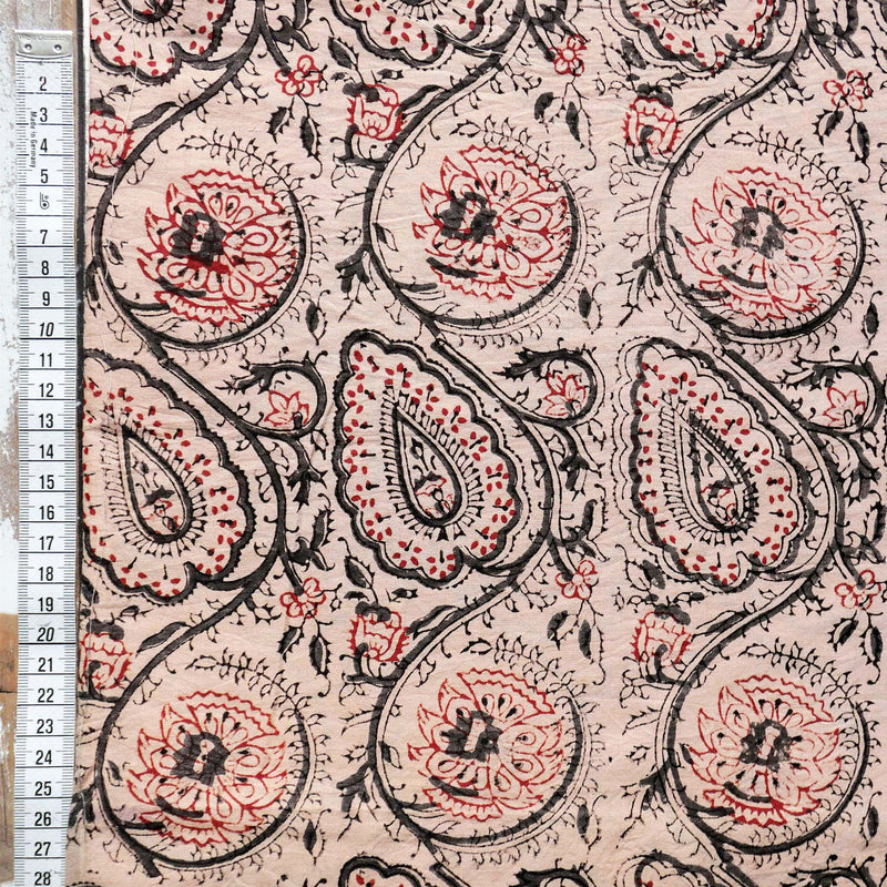 £12.50/mThis is a hand-loomed cotton, hand-printed with a green and red paisley design. We love the soft hand-loomed cotton and the imperfections that come from hand printing. This lightweight cotton is suitable for shirts and dresses.