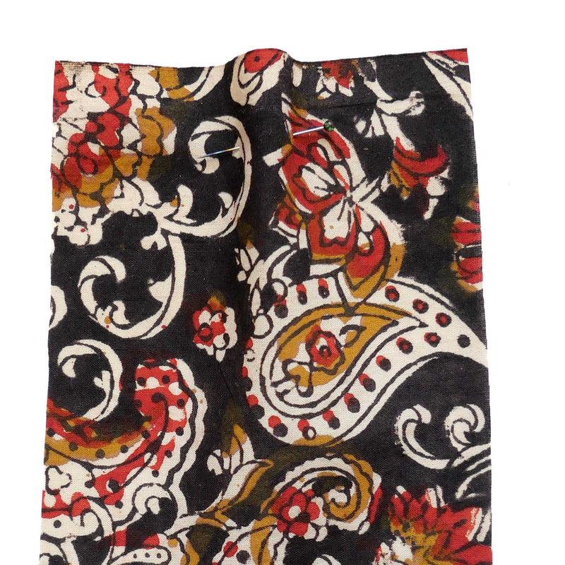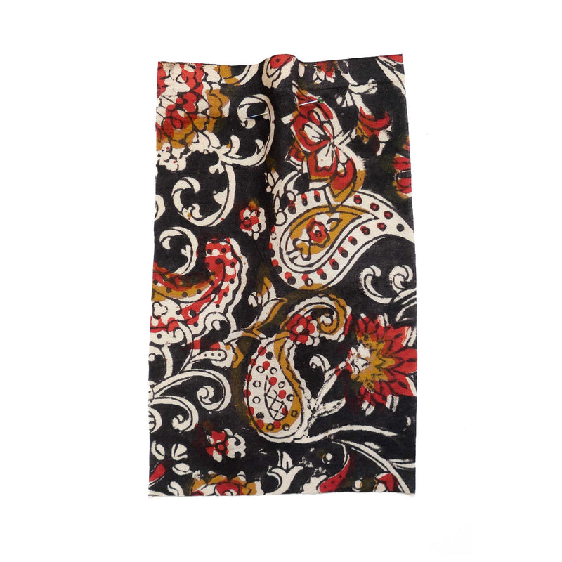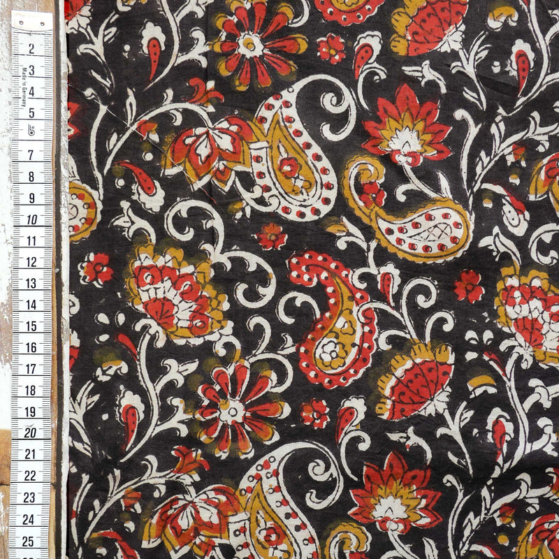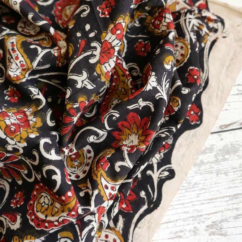 £17.40/mThis is a parchment coloured cotton, printed with a floral and paisley pattern in iron black, red and golden yellow. These lightweight cottons are suitable for shirts and dresses.