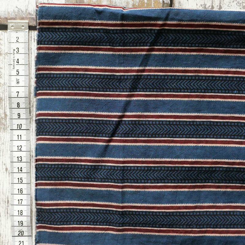 £17.40/mThis is a fine, hand-loomed cotton, hand-printed with a blue and red stripe with chevron details. We love the soft hand-loomed cotton and the imperfections that come from hand printing. This lightweight cotton is suitable for shirts and dresses.