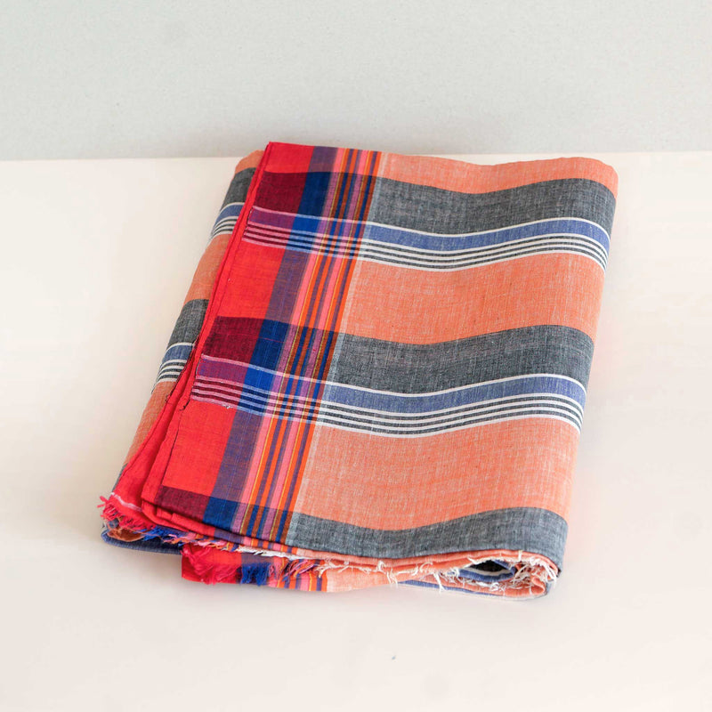 £72.00These hand-loomed cotton saris are woven with colourful stripes at each end, and a colourful border down each selvedge edge. The central 4.5m of the sari is not striped.