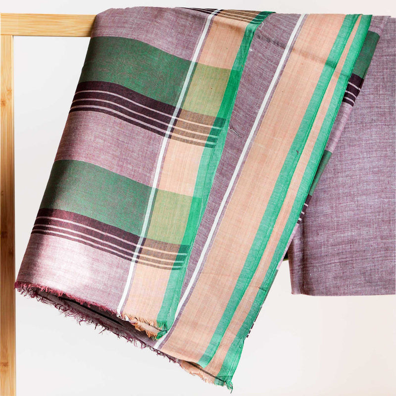 £72.00These hand-loomed cotton saris are woven with colourful stripes at each end, and a colourful border down each selvedge edge. The central 4.5m of the sari is not striped.