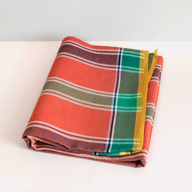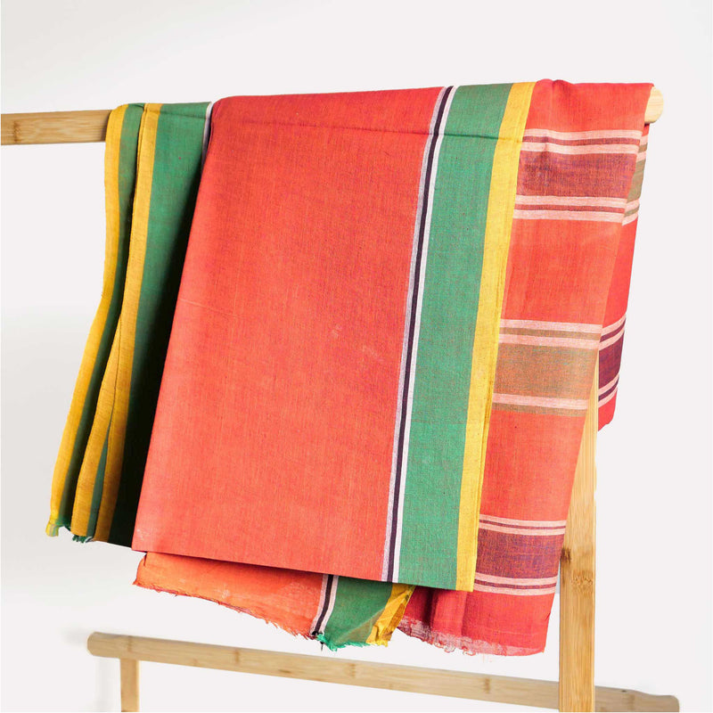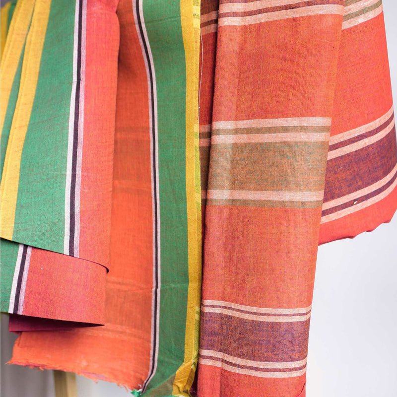 £72.00These hand-loomed cotton saris are woven with colourful stripes at each end, and a colourful border down each selvedge edge. The central 4.5m of the sari is not striped.
