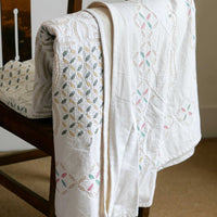 £178.50These applique blankets are incredible. Fine white khadi cotton is hand appliqued onto a cream, calico cotton in an intricate parquet design and embroidered in different colours.