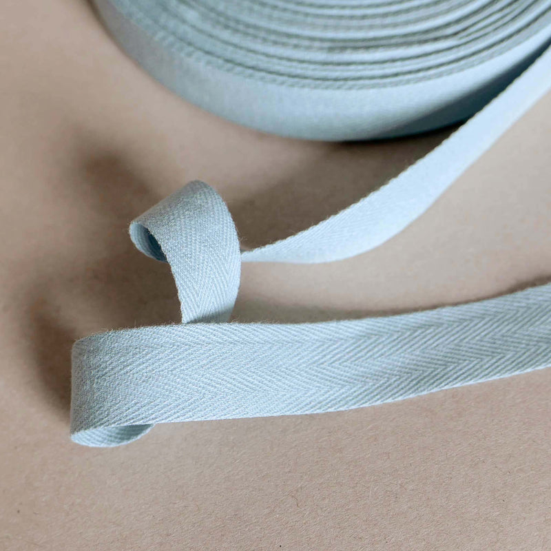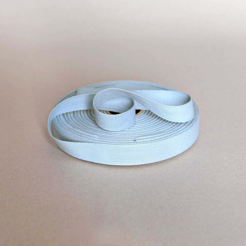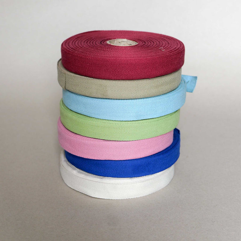£1.40/mCotton tape with a herringbone weave. This is a mid-weight cotton webbing, popular for binding and strapping.
