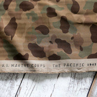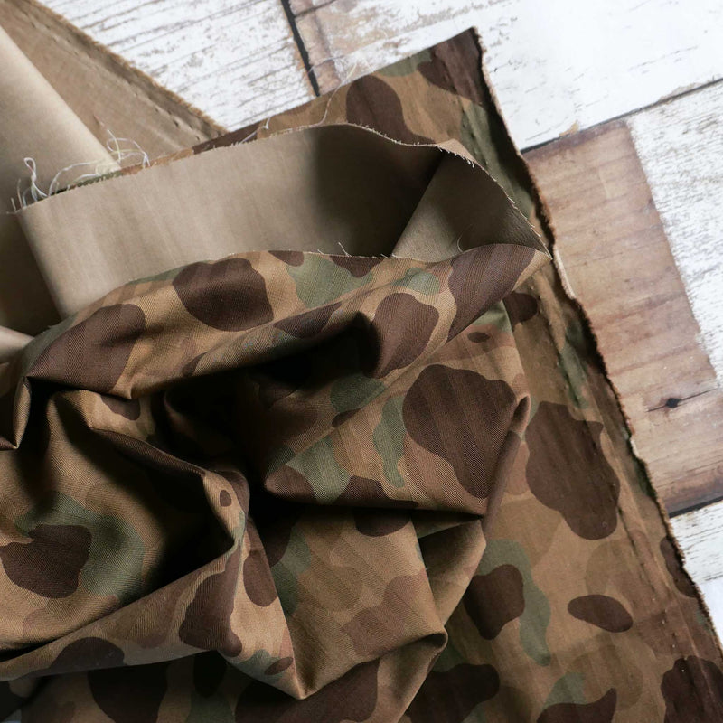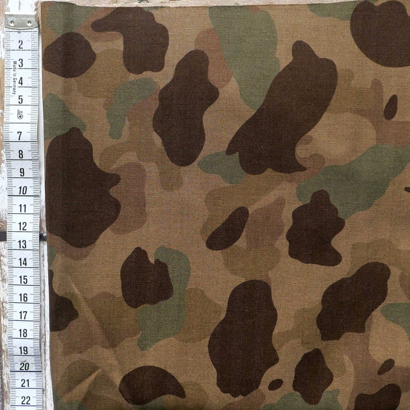£24.98/mCotton herringbones are incredibly tight woven and hardwearing. This is printed with a reproduction of the US Marine camouflage pattern. The fabric has a slightly crisp handle so it will hold some body. Perfect for workwear trousers.