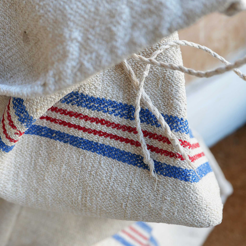 £29.40Vintage linen sacks traditionally used for storing grain. Woven with a coloured stripe these are perfect for storage and popular for making cushions and upholstery.