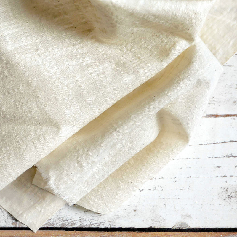 £17.40/mThis is a fine cotton khadi with a woven check texture. This is a hand-loomed, un-dyed cotton which is soft, lightweight and semi sheer.