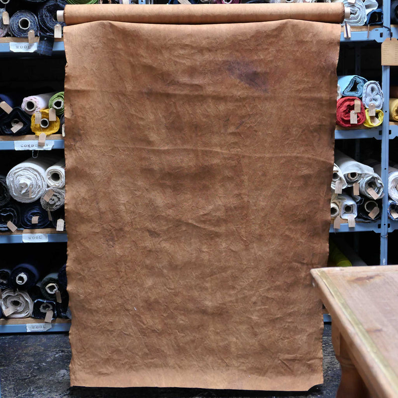 £45.00/mThis is a densely woven cotton canvas with a crisp handle. Kakishibu is a process of dyeing with natural botanical tannins. Persimmon juice is fermented to achieve this rich tea-brown, which develops and deepens with exposure to the sun. Due to the nature of the dye, the colour is mottled and marbled, and inconsistencies are to be expected.