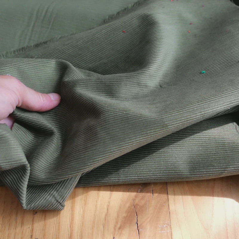 £25.50/mThis is a 2mm cotton corduroy with a directional pile. The fabric is medium weight and perfect for trousers or structured dresses.