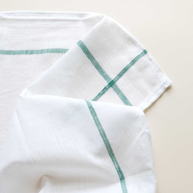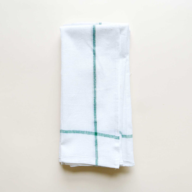 £6.95Set of 4 x cotton napkins. Hand loomed cotton with a green, single-striped border and seamed edges.