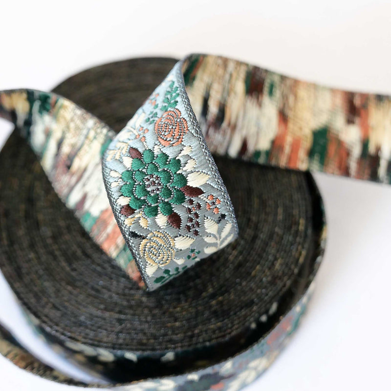 £7.60/mThis ribbon is woven with a pattern of leaves and flowers. Woven in a satin stitch with a matte finish.