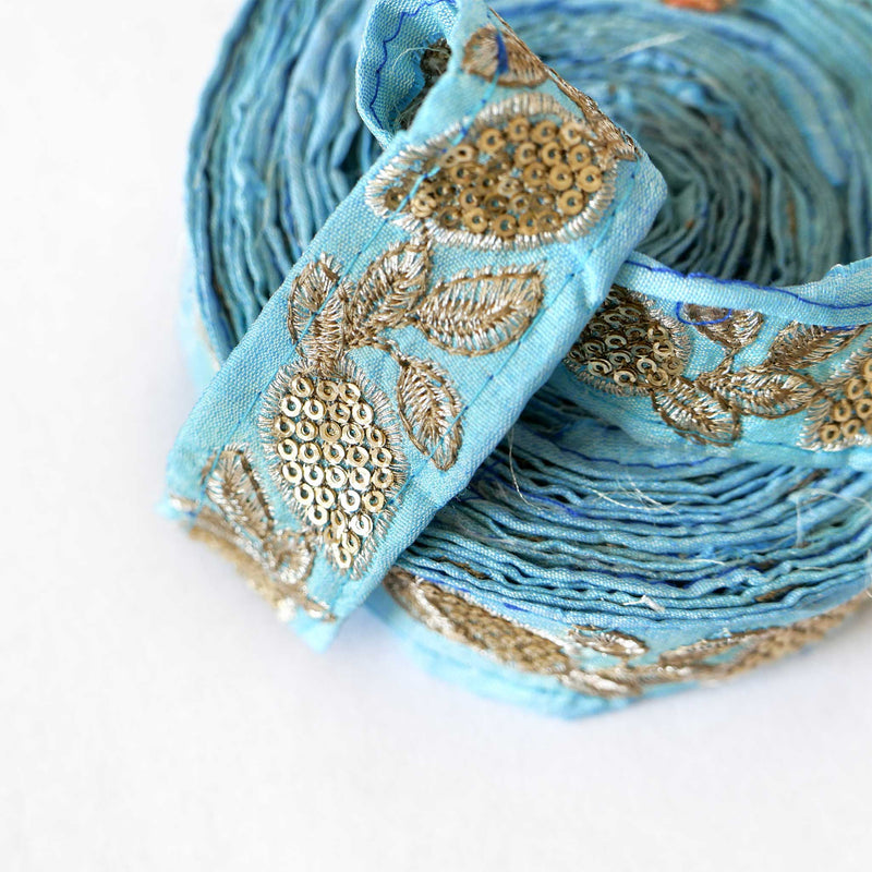 £12.50/mAn embellished trim with gold metallic thread and sequins.