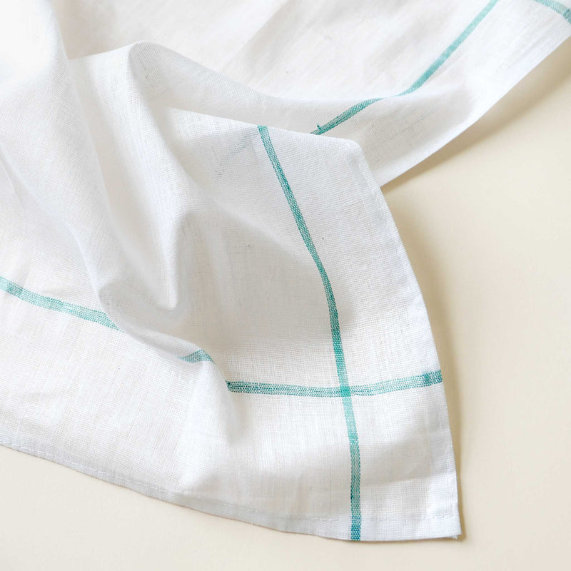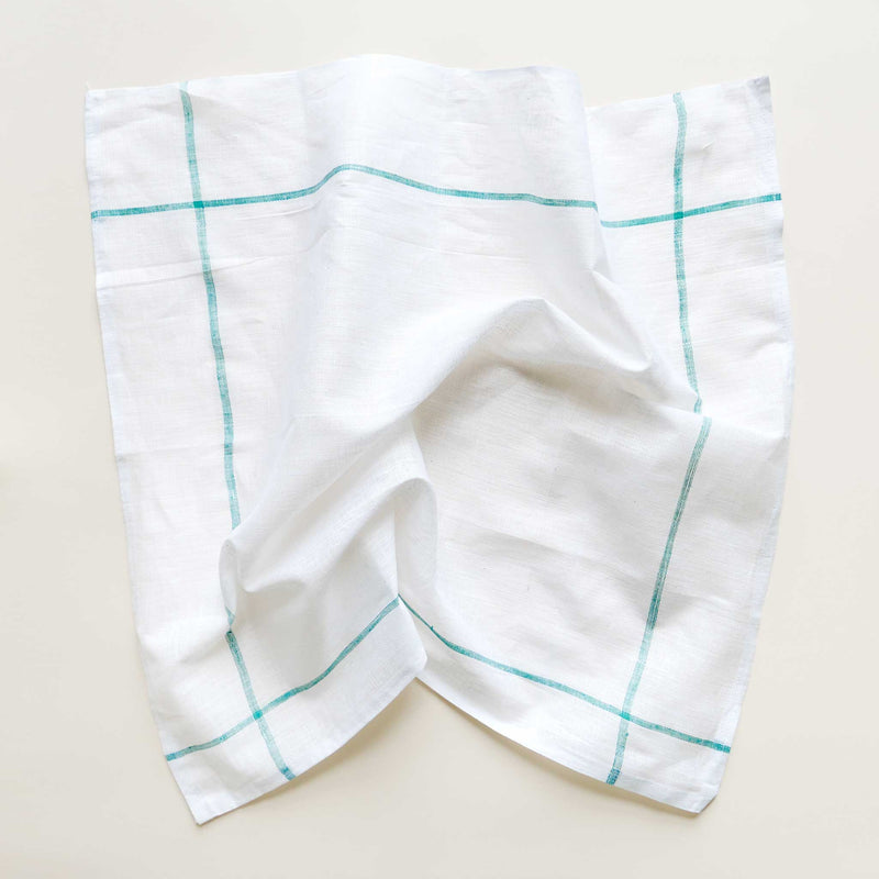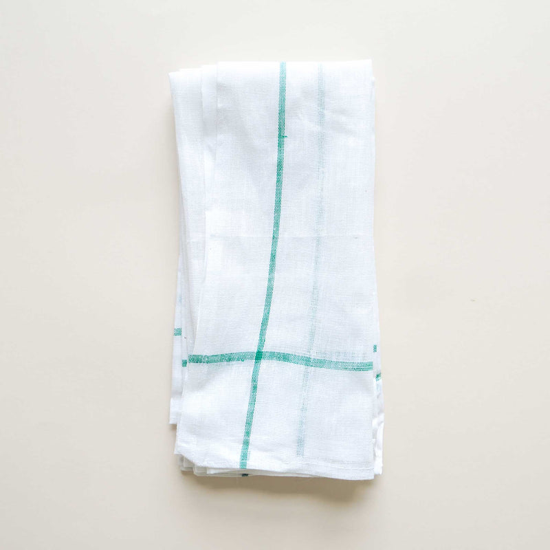 £6.95Set of 4 x cotton napkins. Hand loomed cotton with a green, single-striped border and seamed edges.