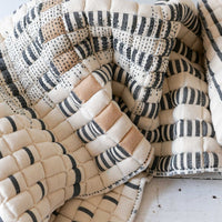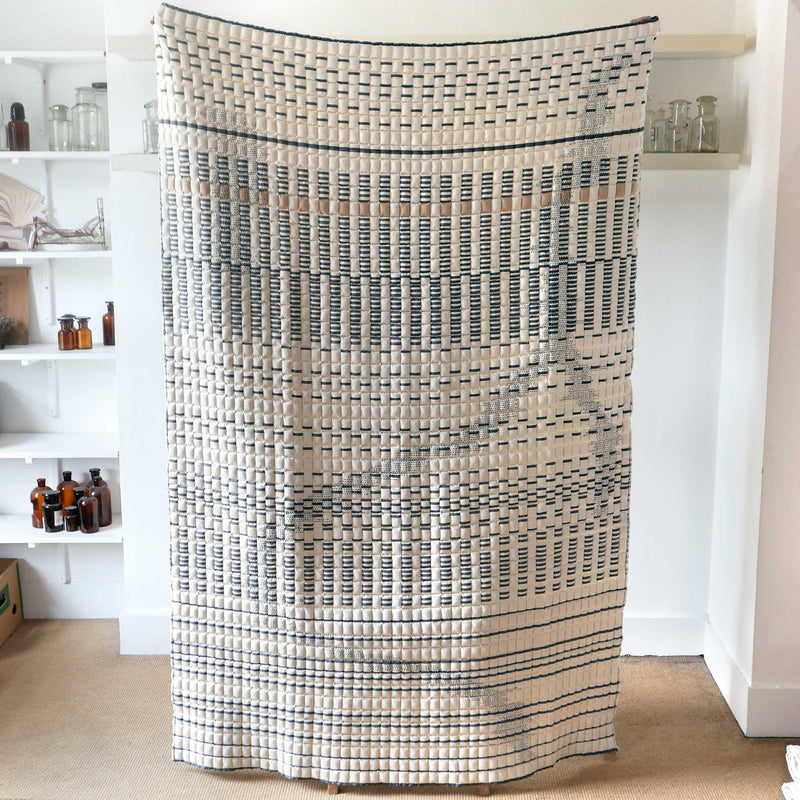 £495.00Sujani is a unique and intricate method of quilting where the stuffing is added between the warp and weft threads during the weaving process, rather than sewn in after. Each quilt is unique and is hand embroidered with running stitches details in patterned formations.