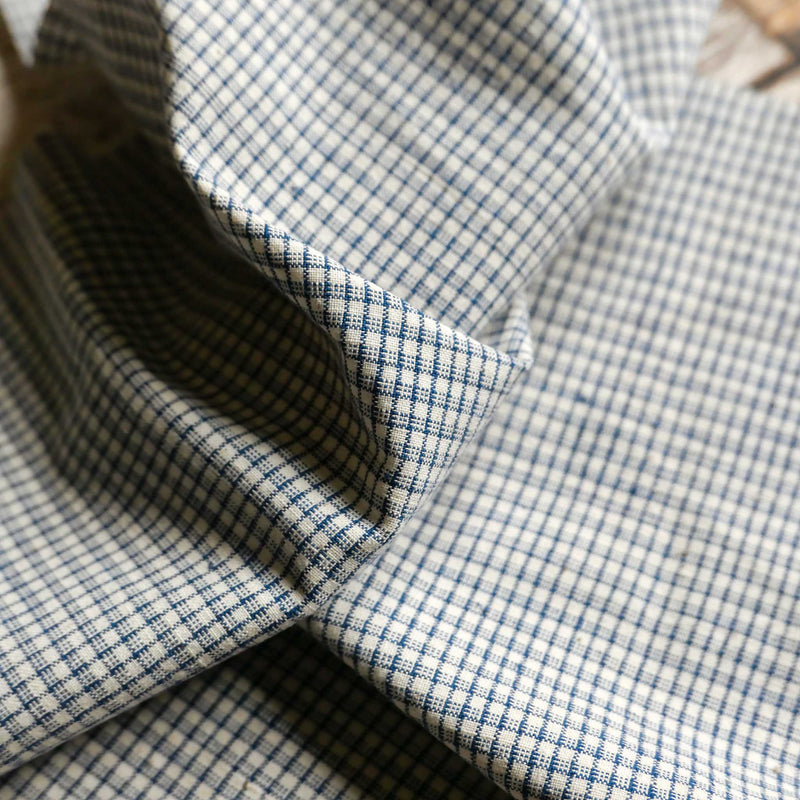£16.40/mVintage Chinese cotton is a narrow fabric that was woven on traditional handlooms in small communities and in peoples homes. A tightly woven canvas-like fabric that is hard wearing with a woven check in cream and blue.