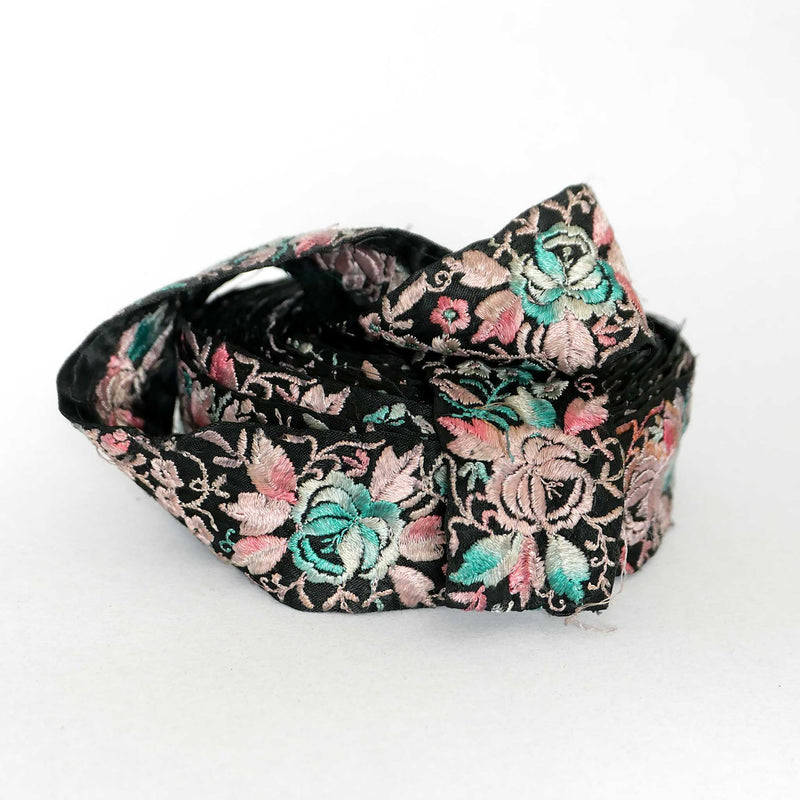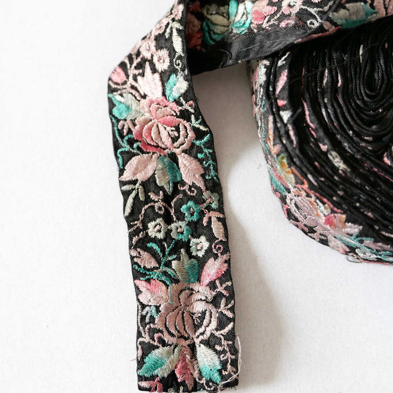 £8.00/mThis vintage trim is embroidered with flowers and leaves in pick and green.