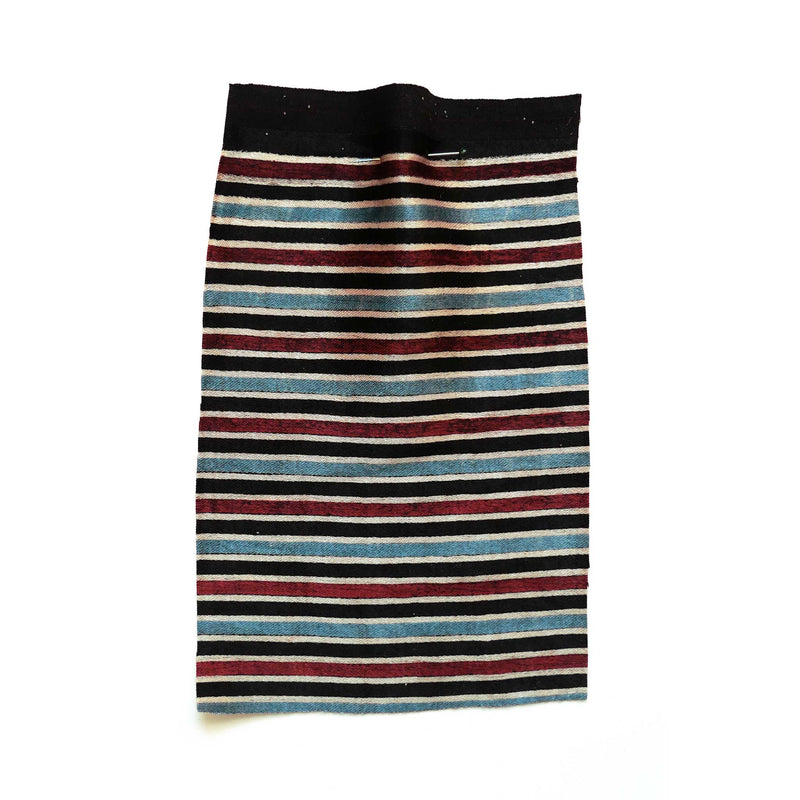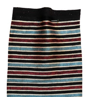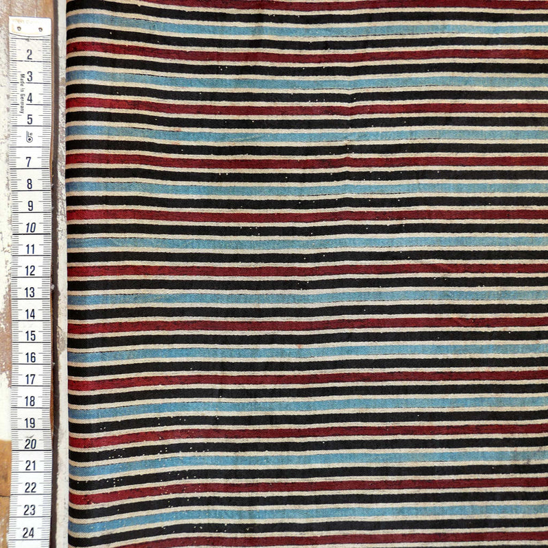 £24.30/mViscose sateen is a beautifully drapey, dress-weight fabric, printed with a cream, red and blue stripe on iron blue.