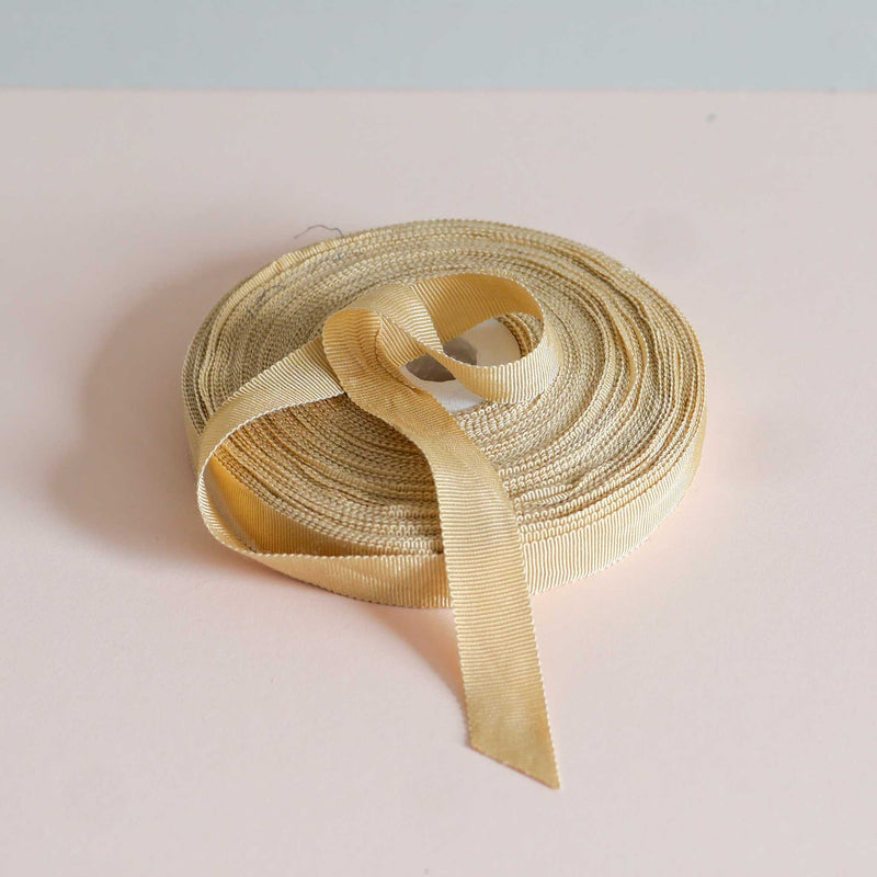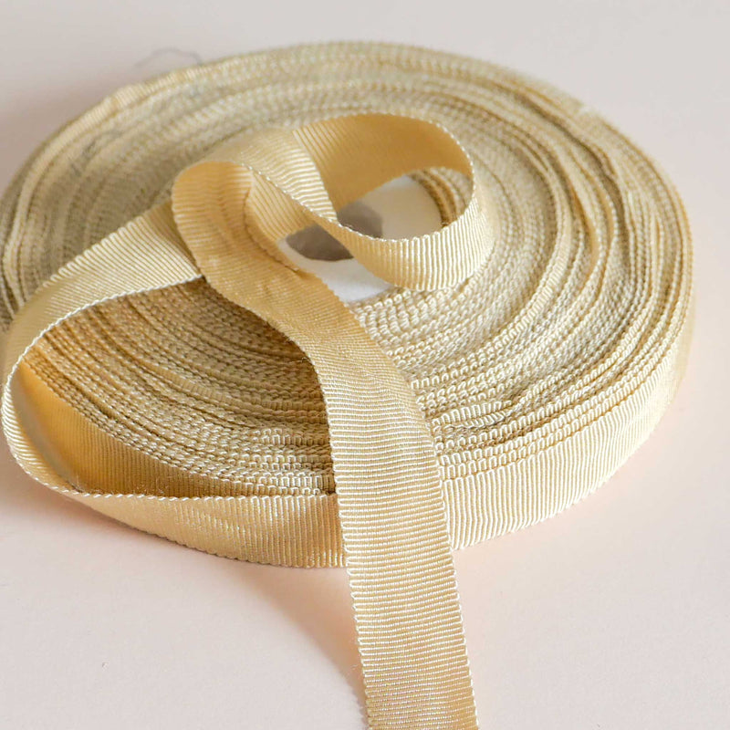 £0.50/mViscose tape with a grosgrain ribbed weave. This is a mid-weight webbing that has been washed, making it soft and drapey, popular for binding and strapping.