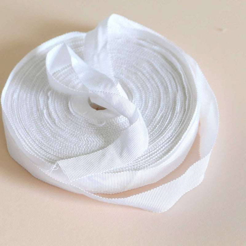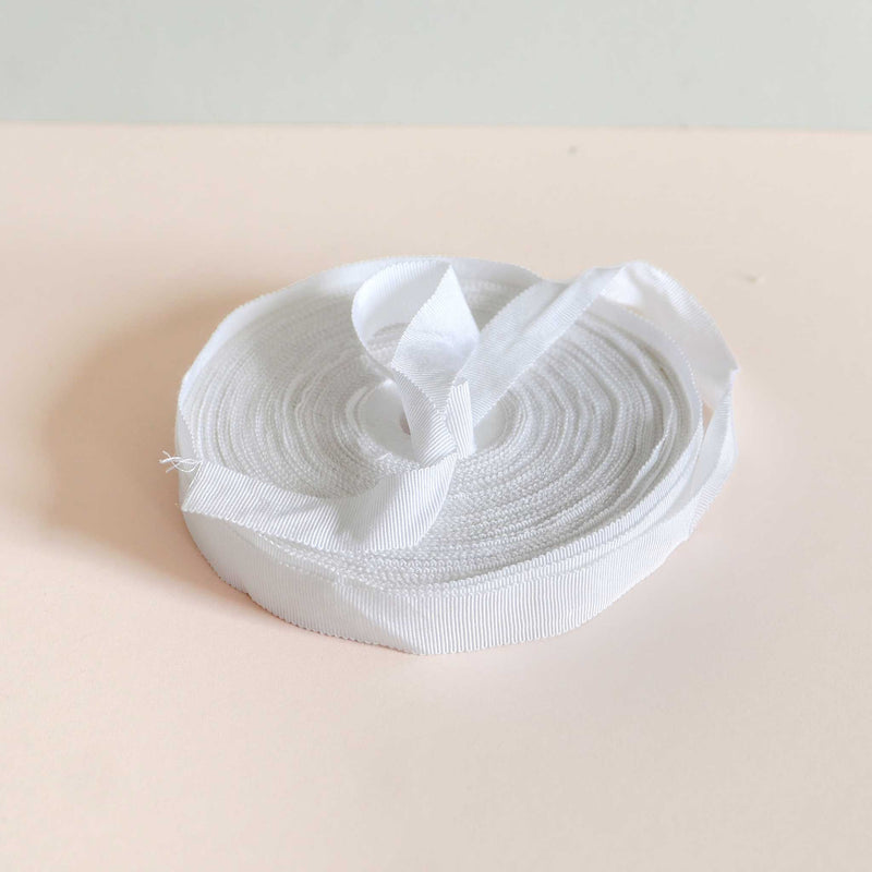£0.50/mViscose tape with a grosgrain ribbed weave. This is a mid-weight webbing that has been washed, making it soft and drapey, popular for binding and strapping.