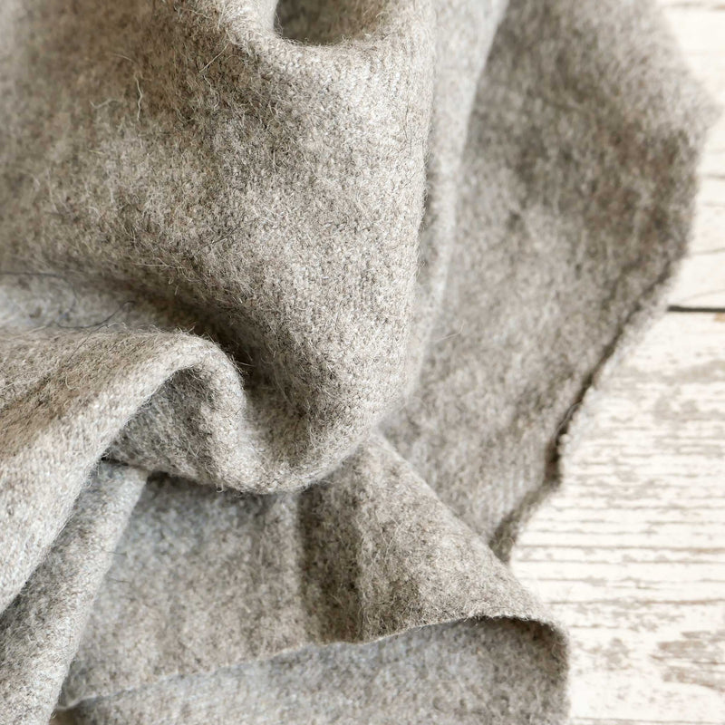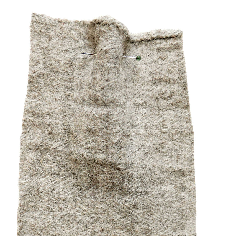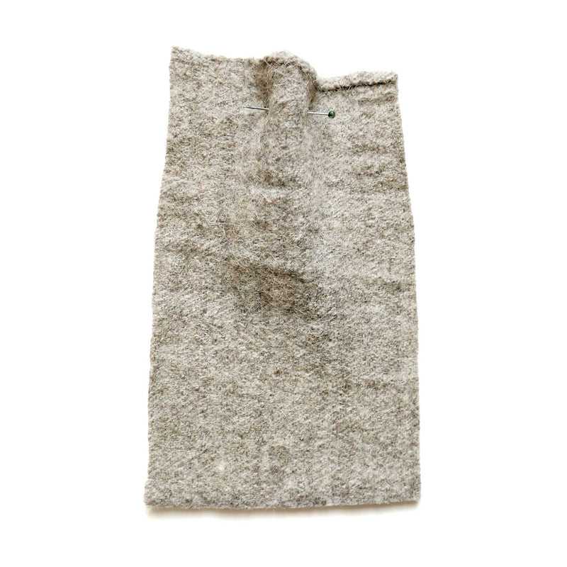 These wools are made from the hair Gaddi sheep. The sheep are sheered, and the hair is sorted into colours before being spun on a wheel called a Charkha. These yarns are then woven into fabric lengths on a hand operated loom, are softened through the process of washing with soapnut, and then felted by hand to achieve these dense and crinkled twill wool fabrics.
