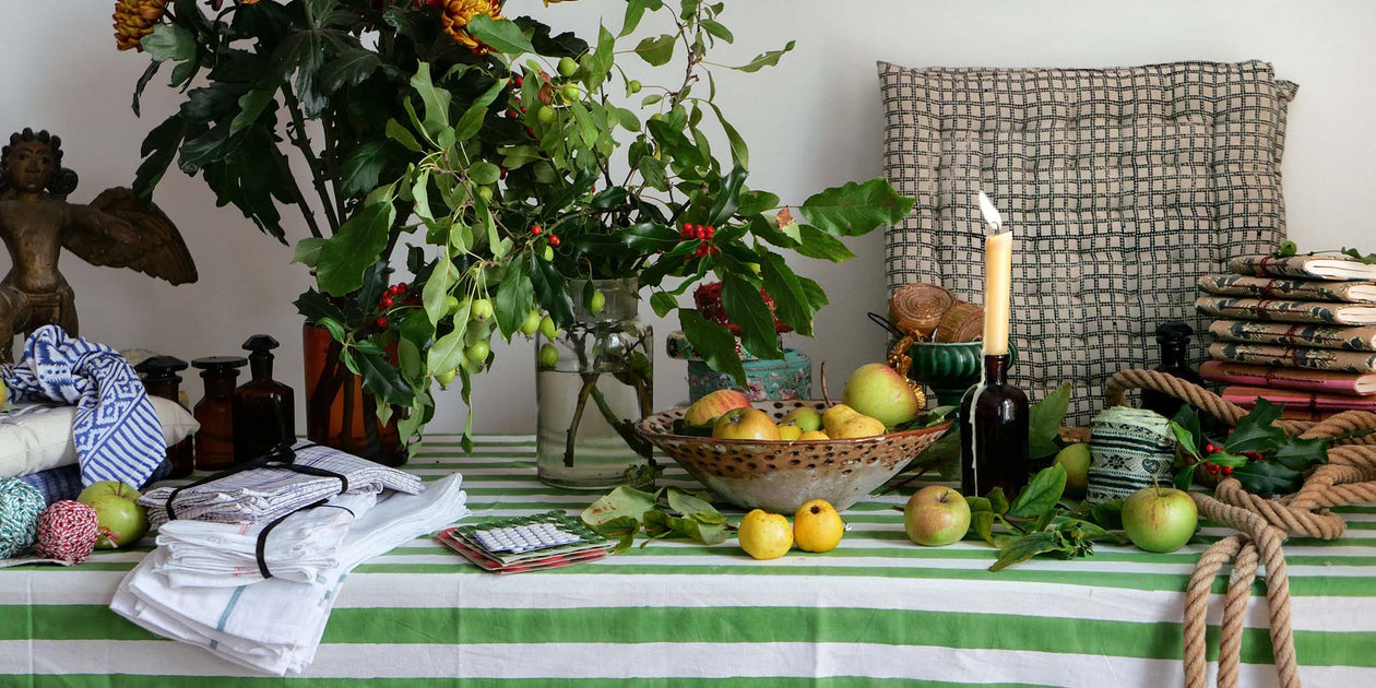 This season our gift ideas include a new collection of quilted wash bags and totes, sleepwear and cotton quilts, string and ribbon for wrapping, decorative glass bottles and colourful table dressings.